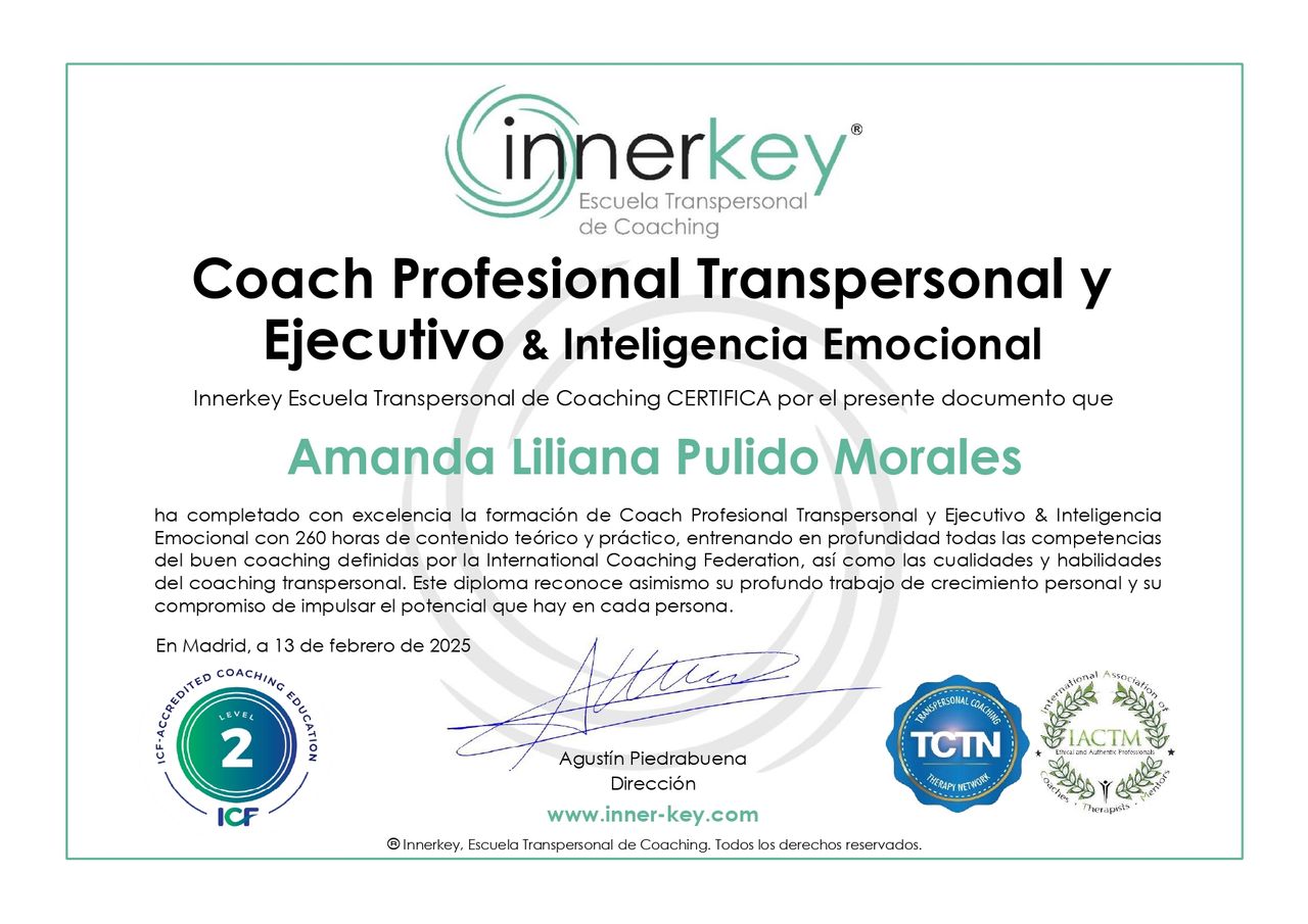Soy Ingeniera Industrial, Especialista en Alta Gerencia y Master Coach Profesional Transpersonal & Ejecutivo con énfasis en Inteligencia Emocional, formada en Innerkey.